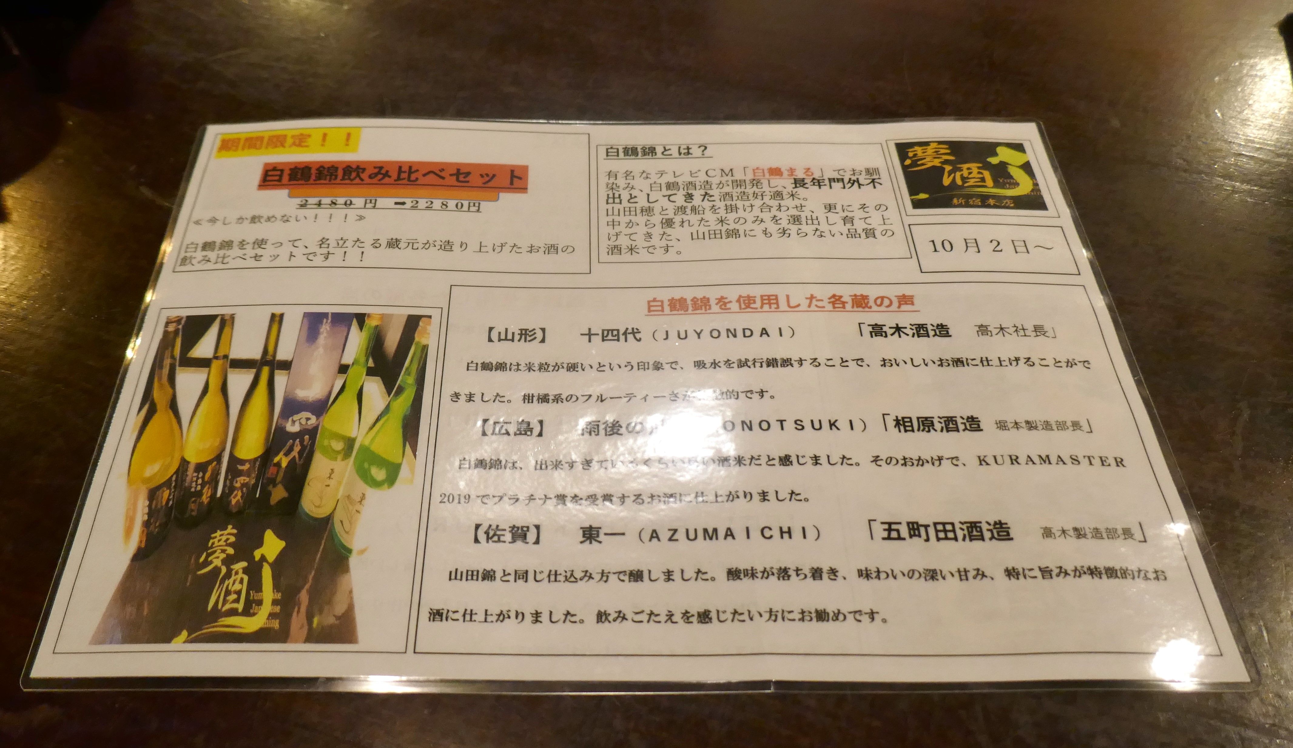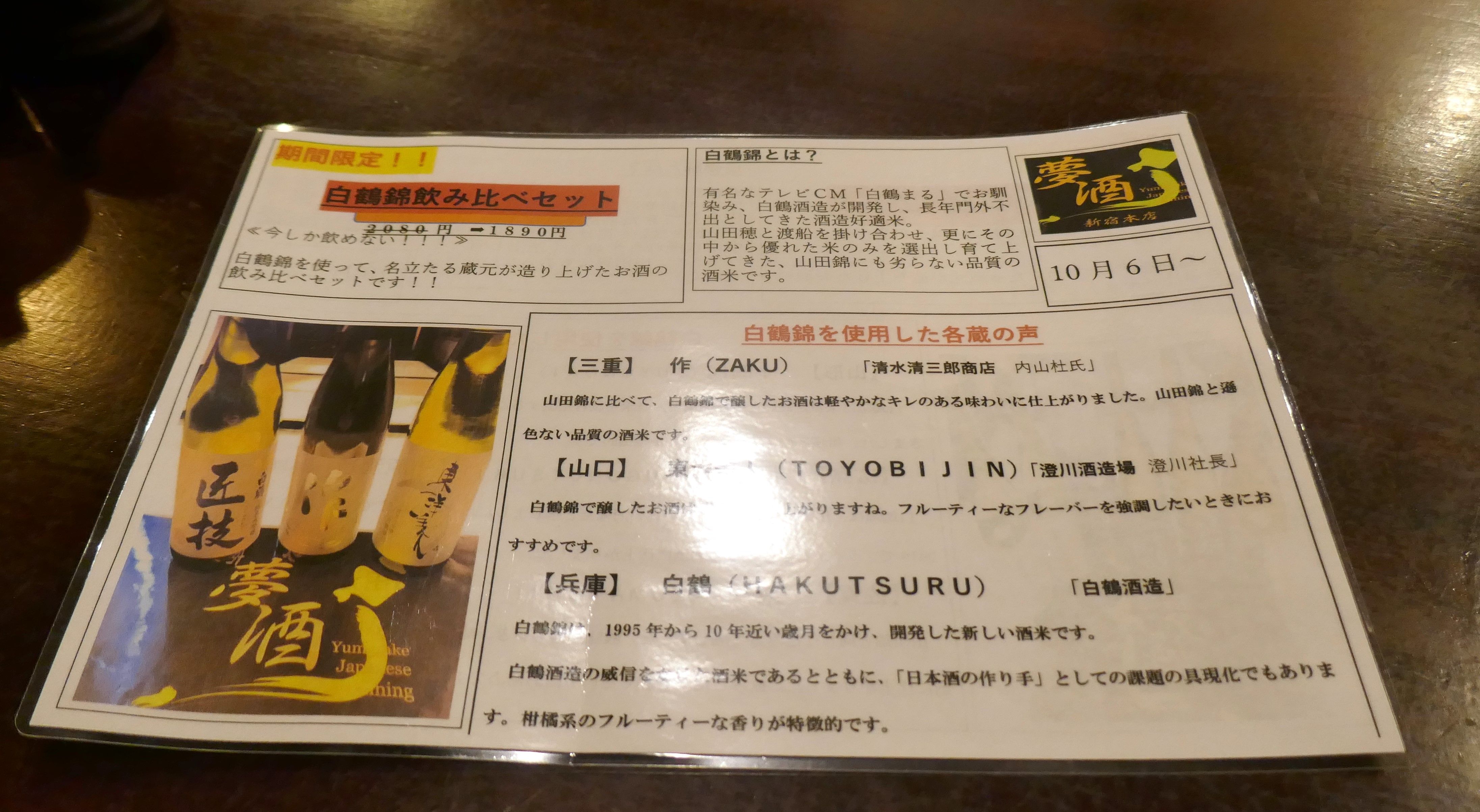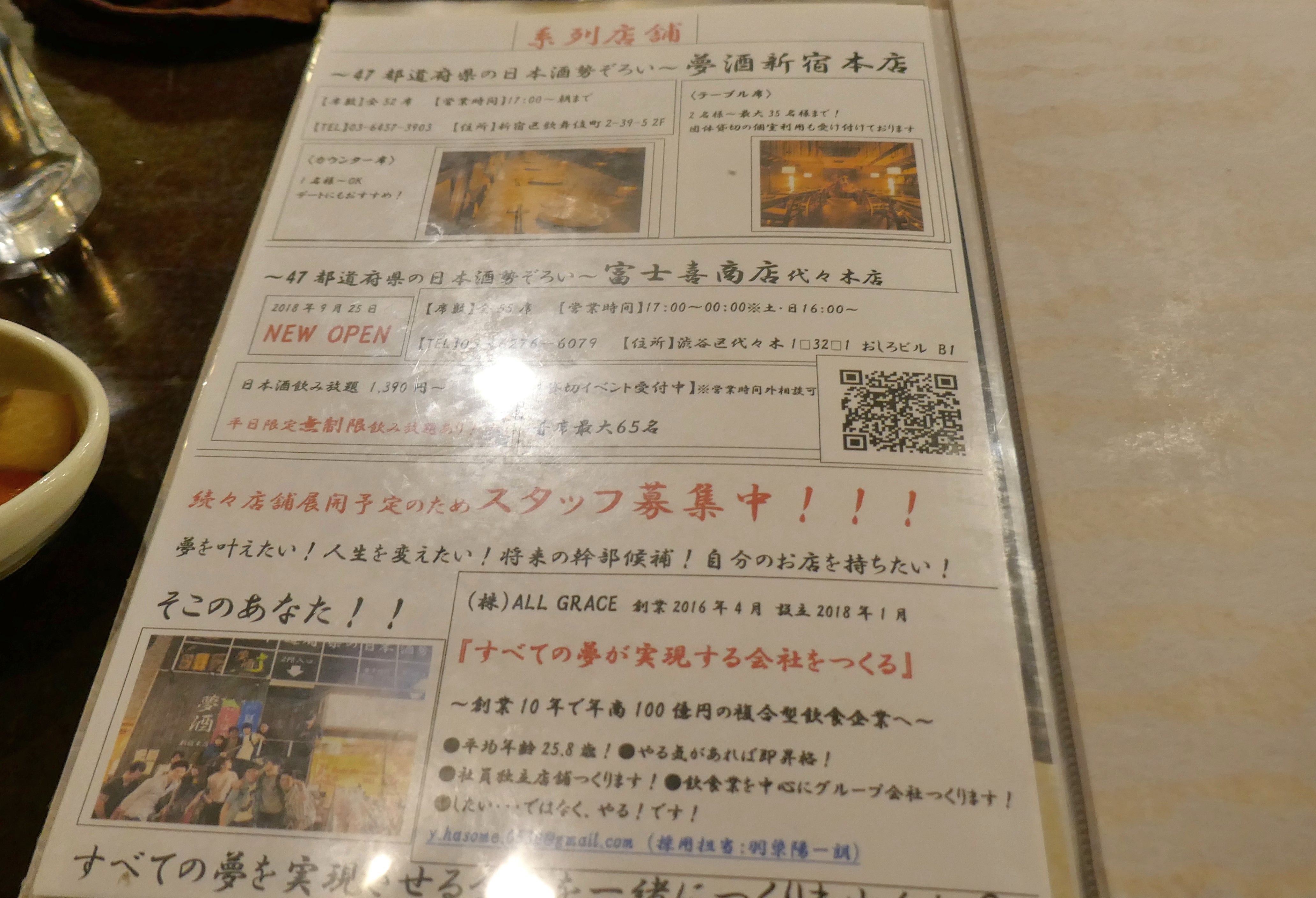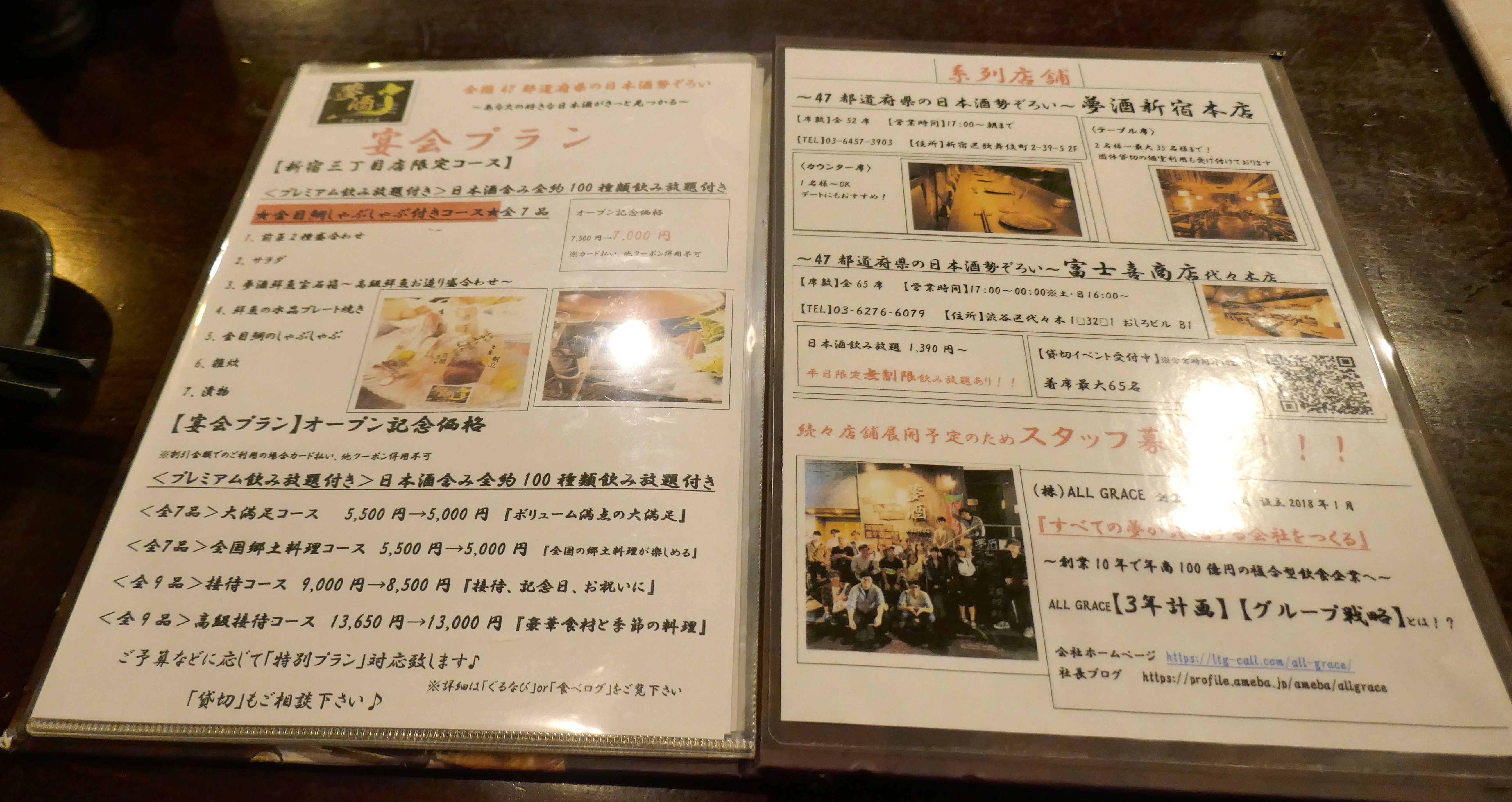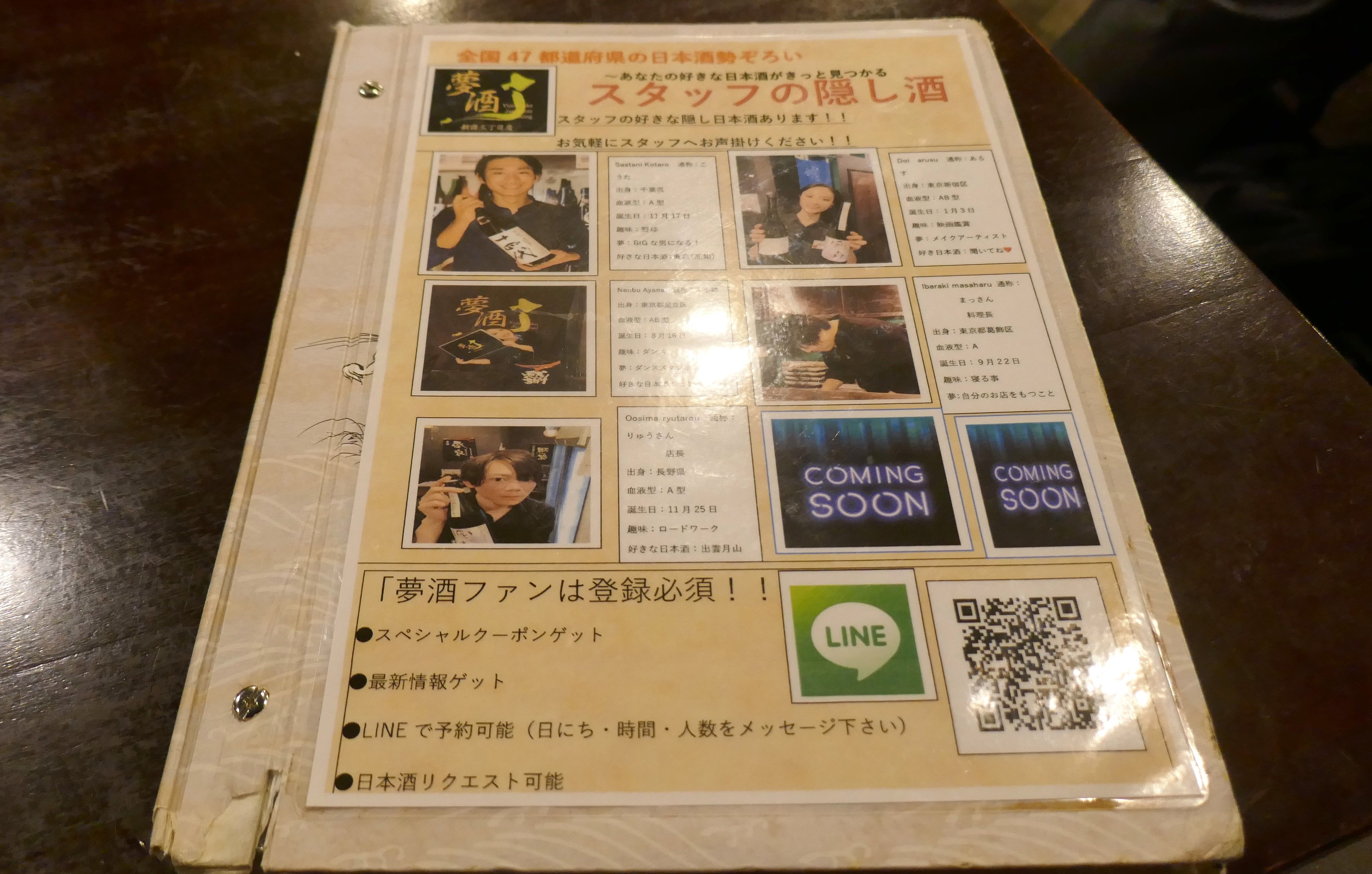 「~47都道府県の日本酒勢揃い~ 夢酒 新宿三丁目店」は、新宿三丁目駅近くにあって新宿らしいキャッチ&キャッチがはびこる雰囲気かと思いきや