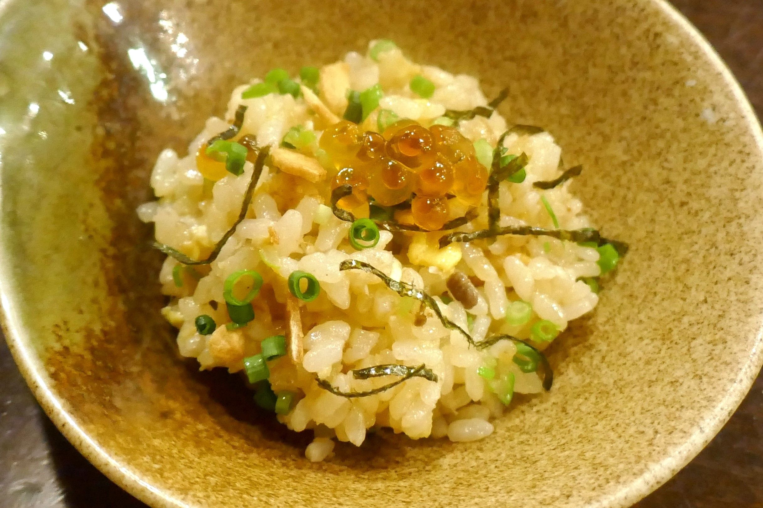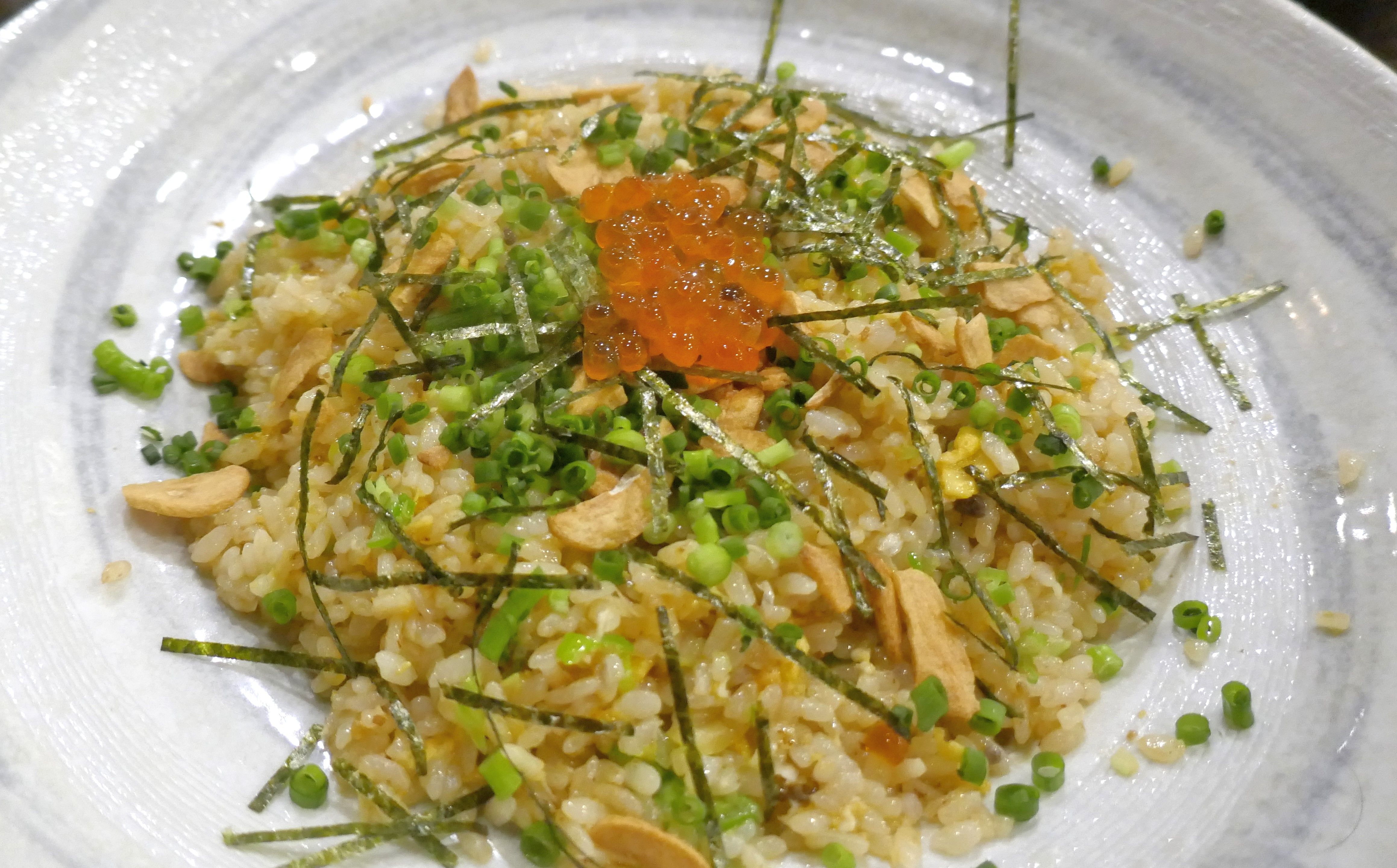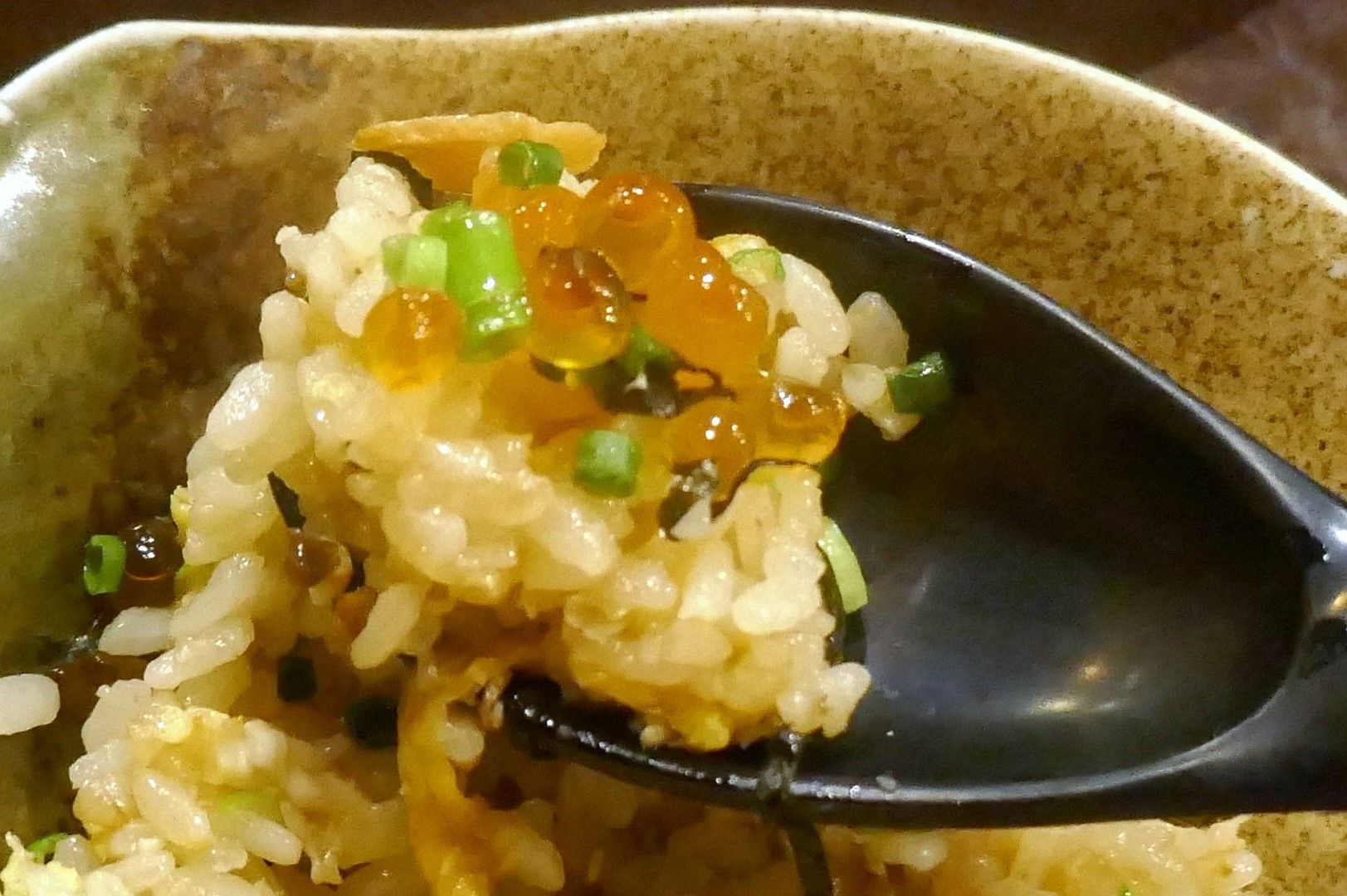 小皿にいくらをデコレーションしながら「酒盗ガーリックチャーハン」を移動!