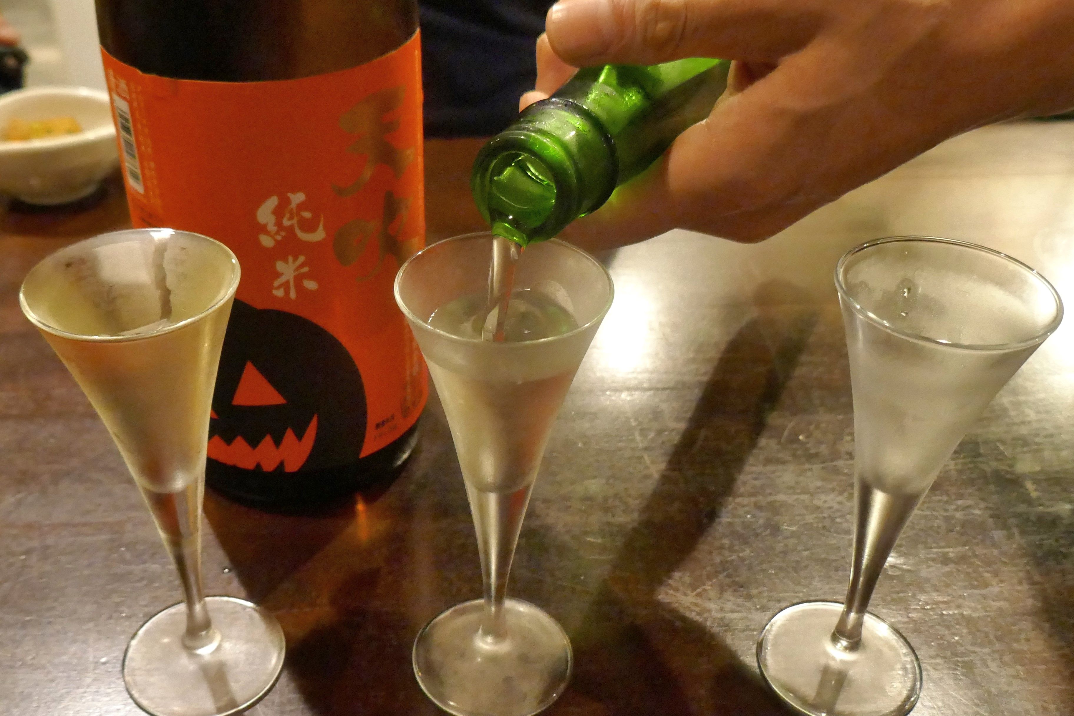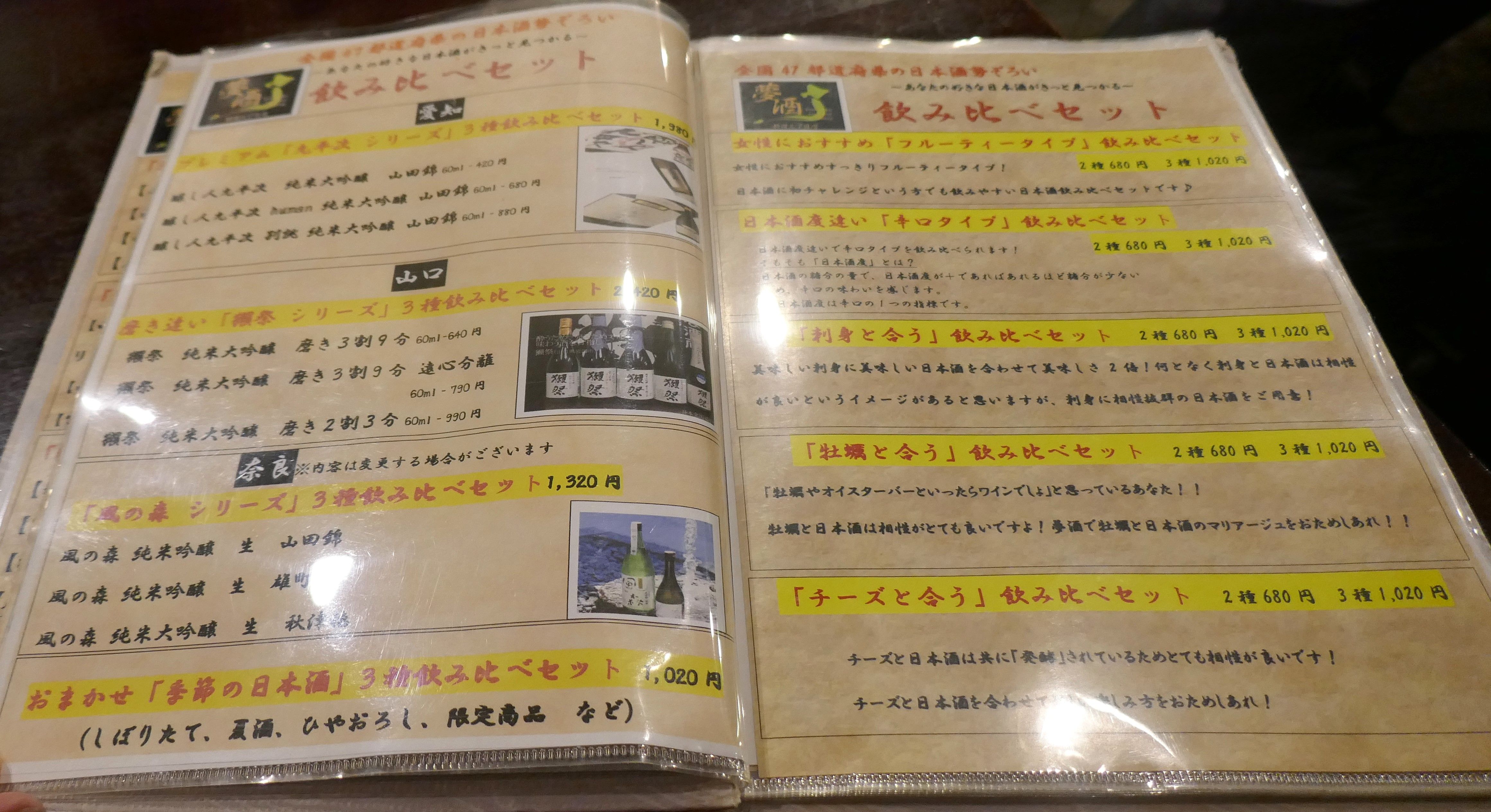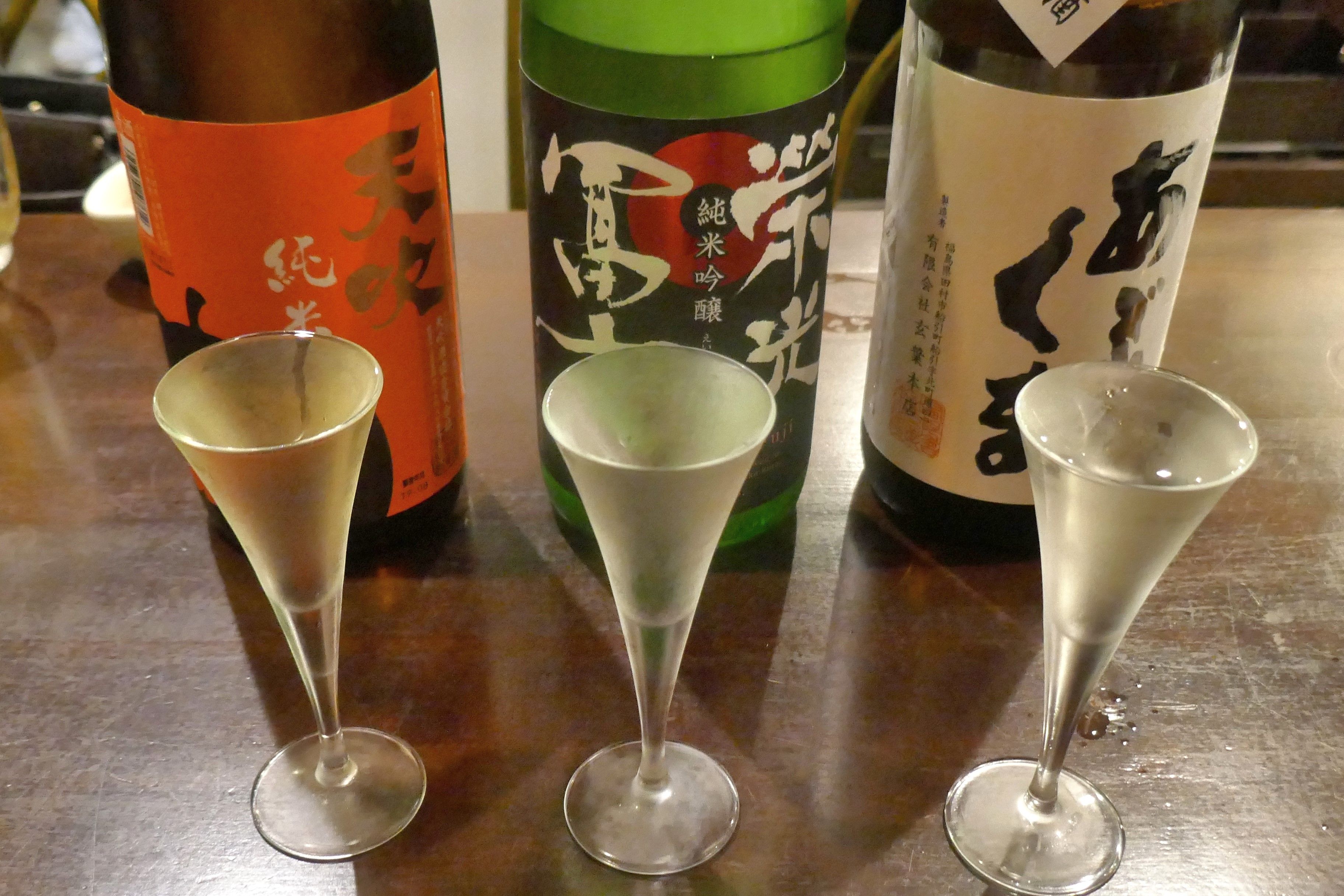 その後は「季節の3種類飲み比べセット」1020円をオーダー。まずは佐賀の「天吹」。