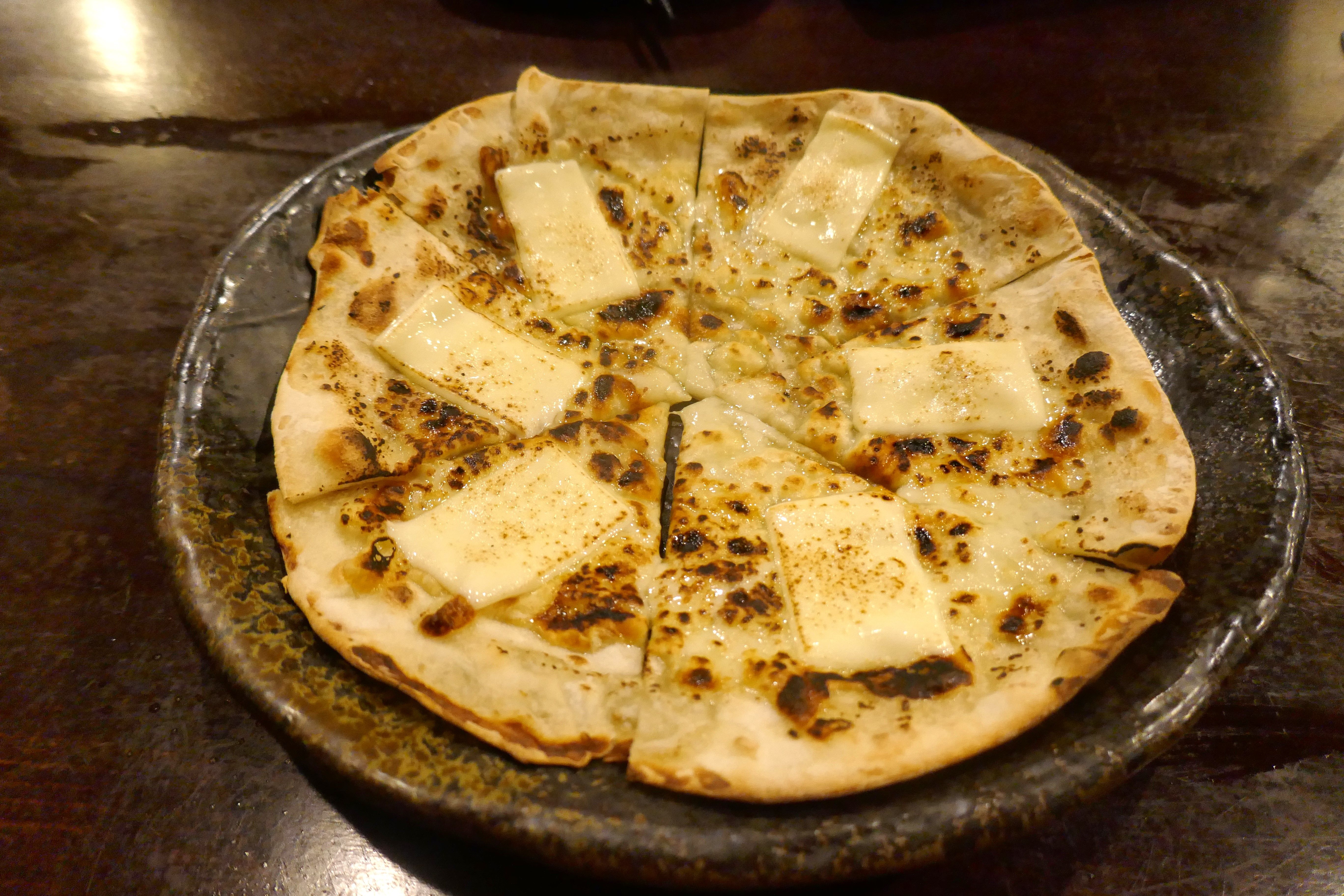 「獺祭の酒粕ピザ」は、ほのかに酒粕の風味が香るものの、味にクセはなくパリッとした生地にチーズのミルキーな風味が効いてお酒が進む美味しさです!