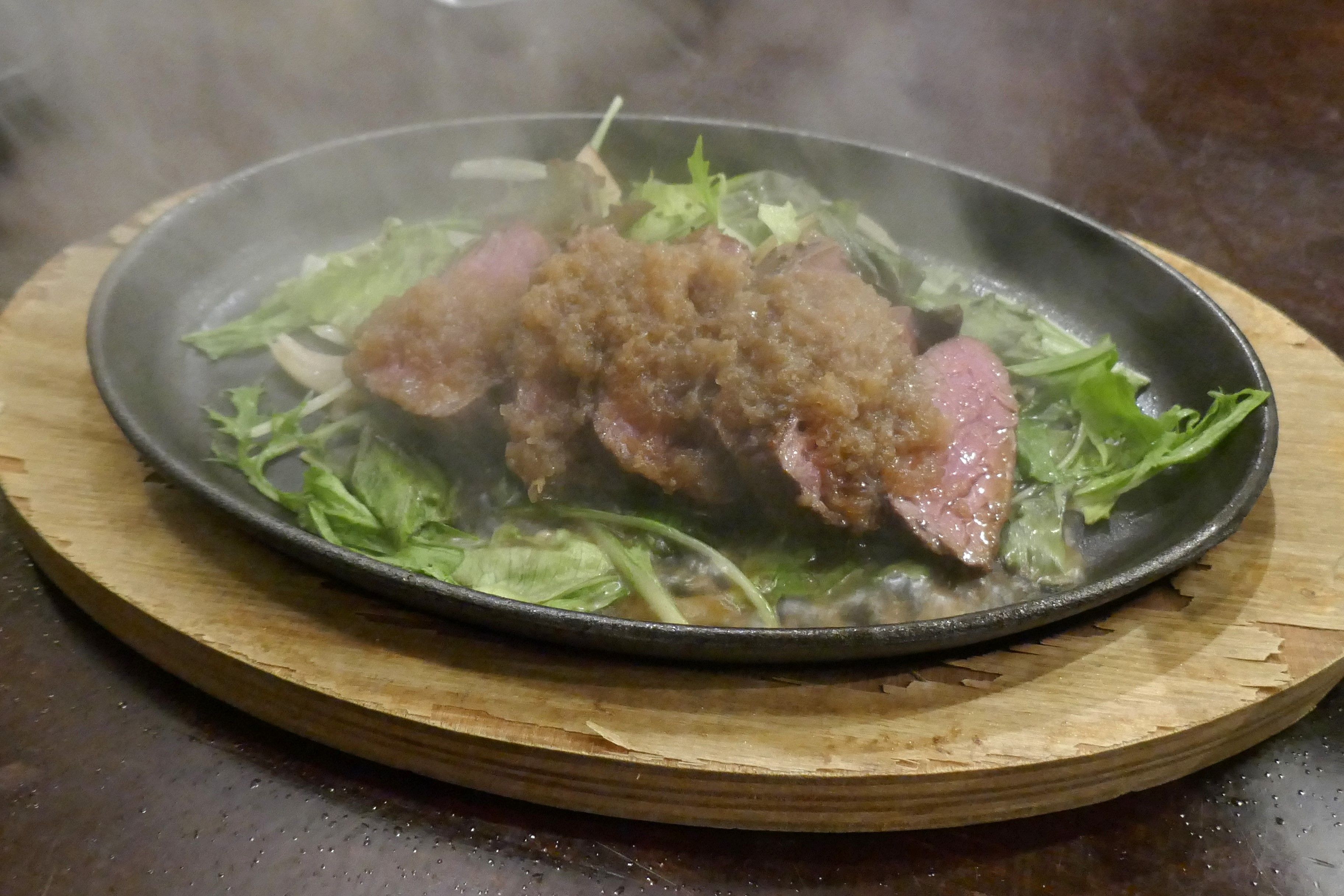 「牛ハラミステーキ」1390円は、熱々感満点な状態で登場!