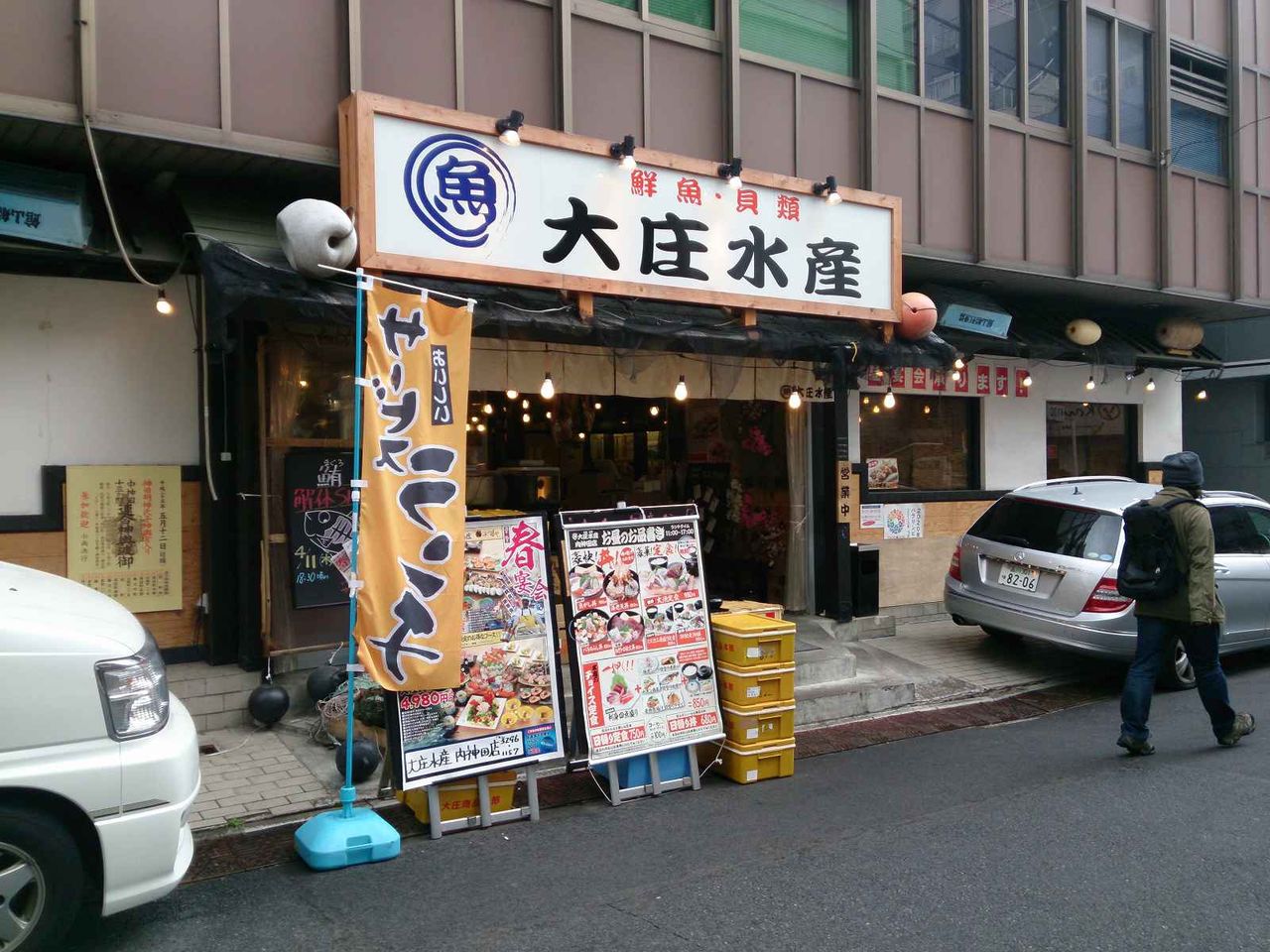 2013 6月 8 11:30:46 たまに行くならこんな店 よろこんで!でお馴染みの庄やグループの海鮮居酒屋の「大庄水産内神田店」で食べた魚介系ランチは厚切り刺身が入ってコスパいいかも カテゴリ: 海鮮系 千代田区内神田1丁目 たまに行くならこんな店は、先日足を運んだピザバルコムギや 焼肉店のHACHIHACHI神田店のすぐ近くにある、よろこんで!でお馴染みの 庄やグループの海鮮居酒屋の大庄水産内神田店です。 大庄水産 内神田店 昼総合点★★★☆☆ 3.3 関連ランキング:居酒屋 | 小川町駅、淡路町駅、神田駅 タグ :#庄やグループ#ハイ!よろこんで#大庄水産#海鮮居酒屋#ランチ#刺身は食べごたえがあり#ご飯おかわり自由